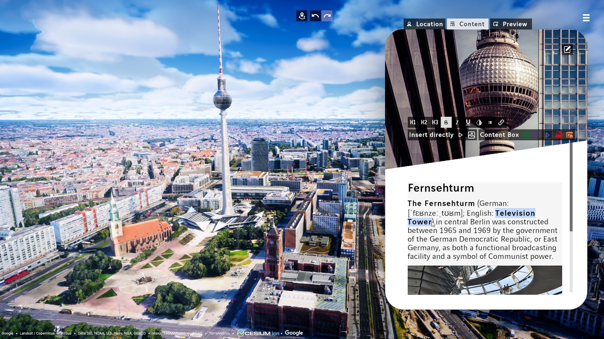 A Google Photorealistic 3D Tiles map app with rich-text WYSIWYG editor functionality and cloud saving to be used on multitouch tables.