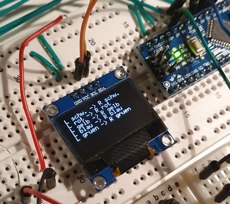 A small electronic puzzle using an Ardunio for a real-life event with several groups of players. The project features a display showing instructions and QR codes, and a set of jumper cables that can be connected to various inputs and outputs.