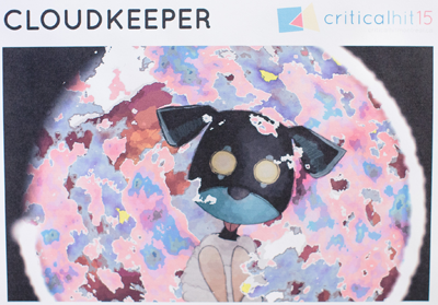 In CloudKeeper, the player is lying down in a bean bag chair, watching an abstract sky projected on the ceiling. Touch/distance-sensing paper crystals dangling from above act as input.